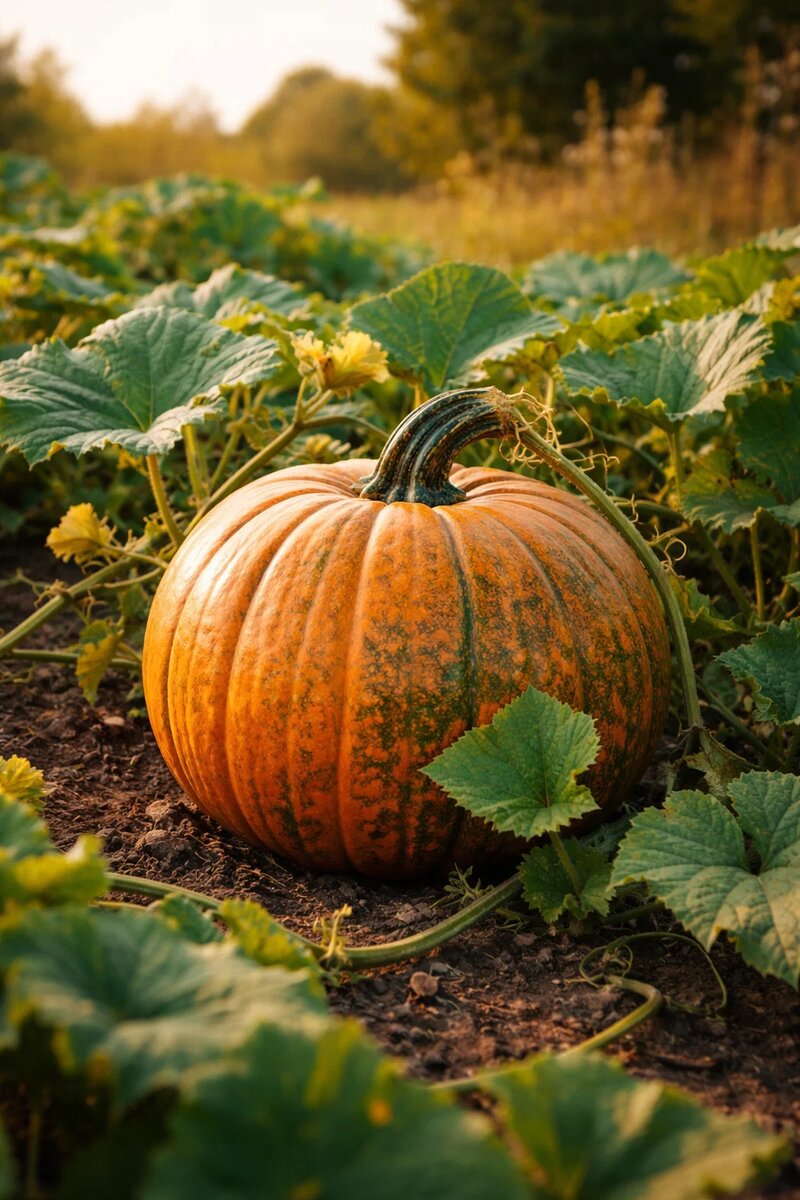 - Тыква (или кабачок) — своими большими листьями покрывает почву плотным ковром, подавляя сорняки и сохраняя влагу.