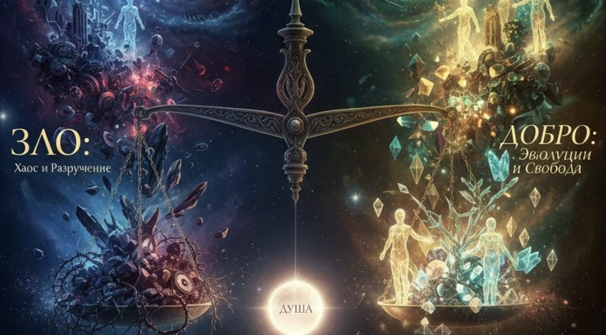 Представьте, что мир — это постоянное движение. Всё, что помогает этому движению, развивает человека, природу и саму структуру космоса — это Добро. Это созидание, исправление старых ошибок и путь к настоящей Свободе.
