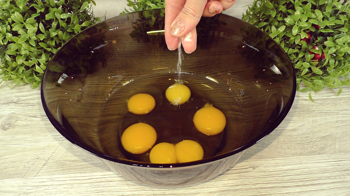 Для данного рецепта я буду использовать 5 яиц, одно яйцо мне попалось с двумя желтками.