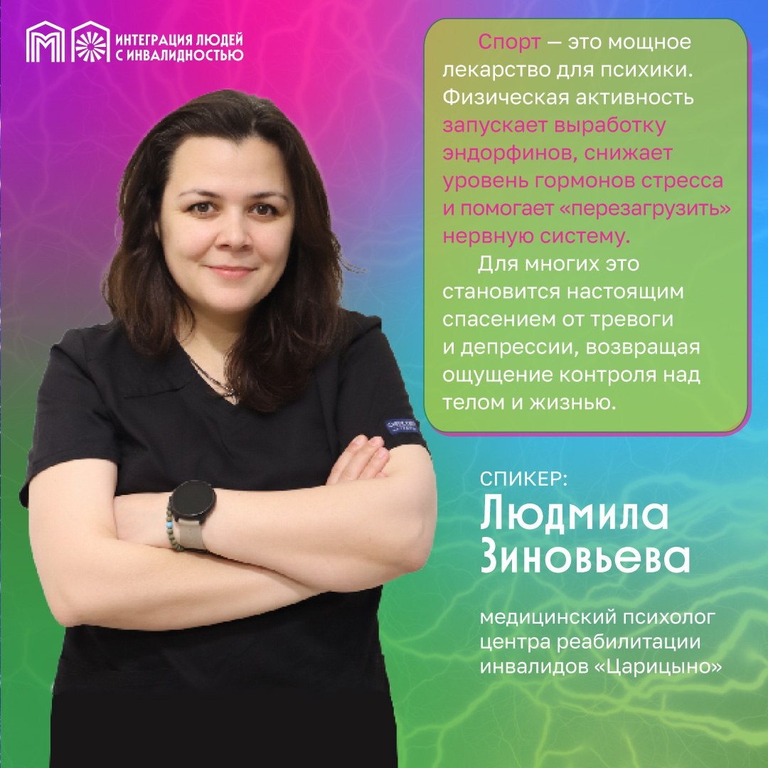 ? Физическая активность — это не только про мышцы и выносливость. Она влияет и на психику, помогая снизить уровень стресса и вернуть ощущение контроля. Как именно работает этот механизм — рассказывает медицинский психолог Центра реабилитации инвалидов «Царицыно» Людмила Зиновьева.