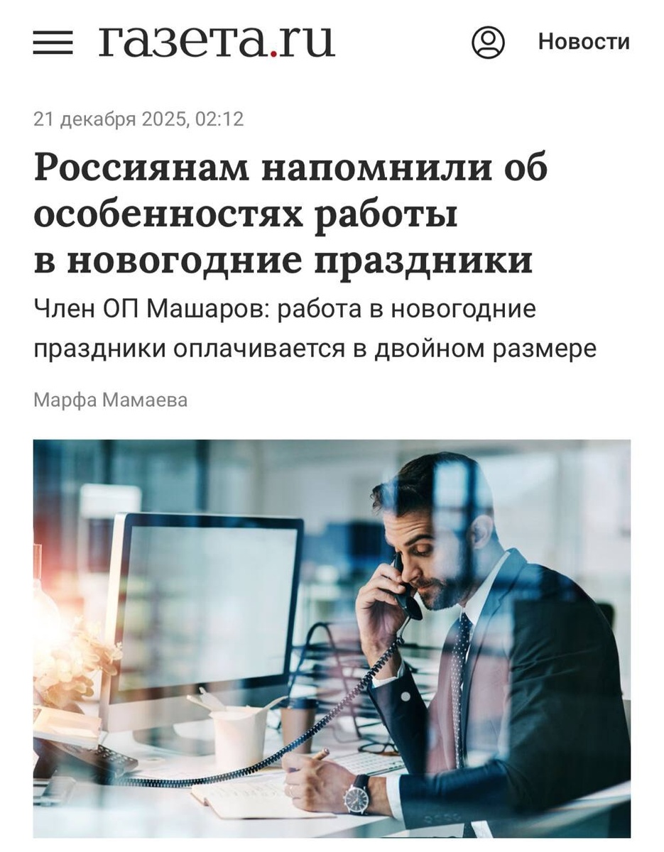 За работу в новогодние праздники должны платить как минимум В ДВА РАЗА БОЛЬШЕ — напомнили в Общественной палате
