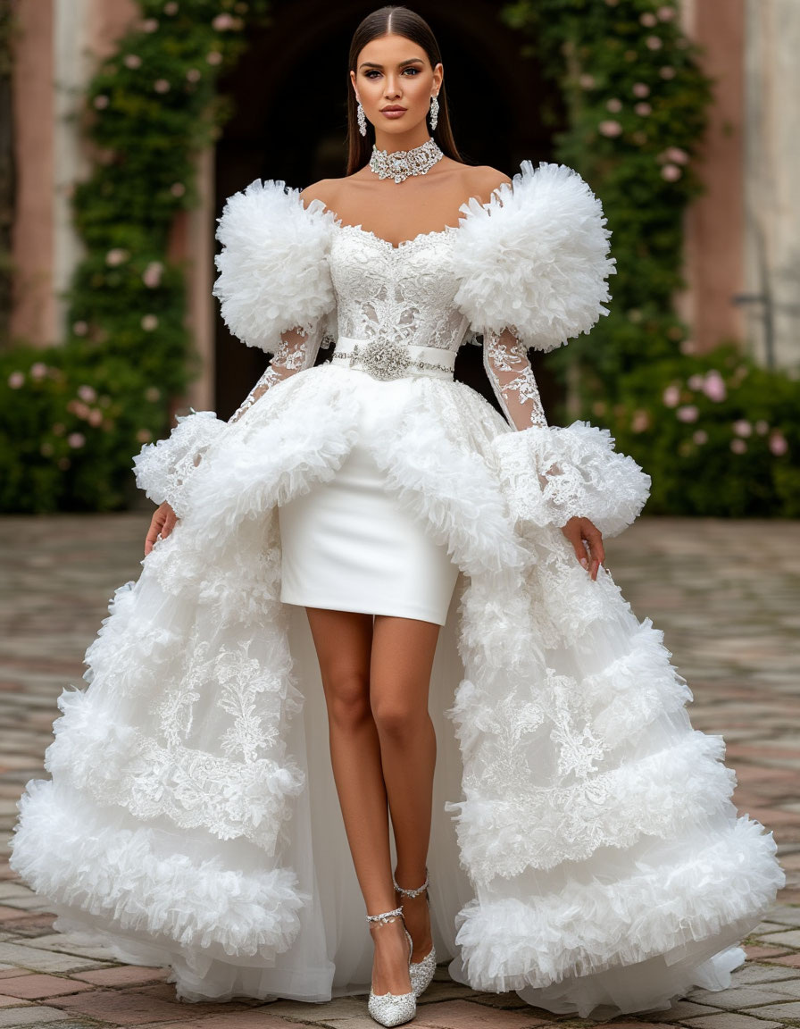 "Новый год" сам по себе прекрасный праздник, а если в предновогодние дни устроить свадьбу то праздников станет ещё больше. Главное правильно рассчитать бюджет, а то на всё может и не хватить не только денежных средств, но и праздничного настроения. Хотя праздновать можно постоянно и для этого много средств не обязательно, главное желание. И как говорила одна моя старая знакомая "сам себе праздник не устроишь-никто не устроит". Поэтому в канун "Нового года" можно устроить ещё одно волшебство которое соединяет два влюблённых сердца. Кто не успел в тёплое время соединиться в одну большую и крепкую семью, с новыми родственниками, то может поторопиться и сделать это до прихода "Нового года". И уже семьёй, после слов президента и бой курантов, вступить в новую жизнь. Объединяясь, в пары, люди создают не только семью, но и крепкую страну. И для зимней свадьбы искусственный интеллект подобрал роскошные варианты, моделей зимних, свадебных платьев. Судя по предложенным вариантам данные образцы