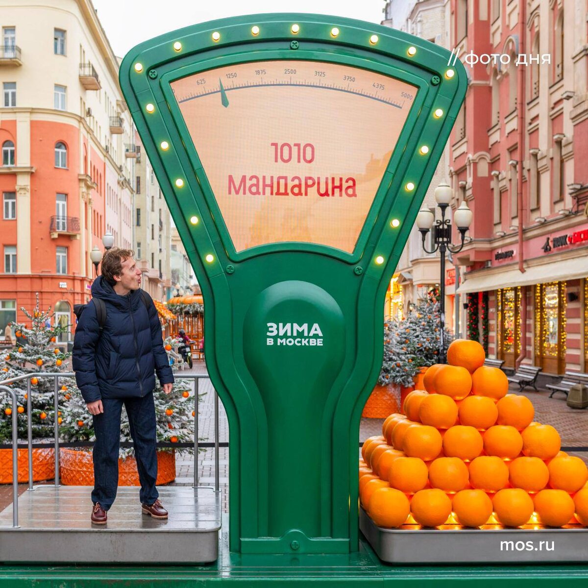 🆓🍊 Сколько вы весите в мандаринках? Узнать это можно с помощью специальных весов на площадке проекта «Зима в Москве» на Арбате