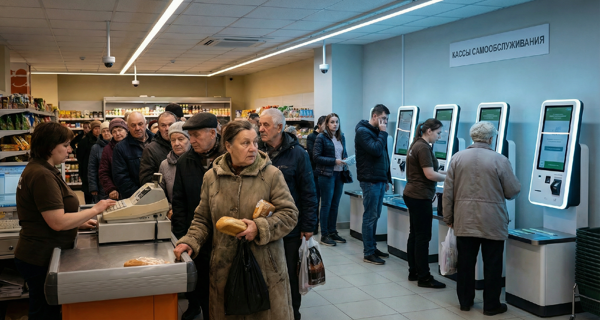 Зашла я на днях в наш магазин у дома, куда ходила годами. Там все было привычно до мелочей, знала где что лежит и кто сегодня на кассе. А теперь сделали ремонт, холодный свет вместо теплого от ламп Ильича. И поставили новые аппараты – кассы самообслуживания, чтобы люди сами брали продукты. Целая стена экранов, а я стою и чувствую, что стало неуютно, магазин перестал быть живым местом. Ещё недавно было несколько обычных кассы с продавщицами, я многих знала в лицо, не друзья, но по-человечески поговорить можно, спросить как здоровье и улыбнуться. А сейчас часть сократили, мне продавщицы сказали, что якобы оптимизация, и поставили эти аппараты. А как пенсионеры должны научиться платить сами? Бегает там одна девушка и объясняет что и как, а у оставшейся одной кассы теперь скапливаются очереди. У этих же автоматов то оплата не проходит, то не пищит товар. Я постояла минуту и посмотрела на людей у этих касс, но ведь никакой радости там нет, стоят напряженные и злые. Самое неприятное, что чел