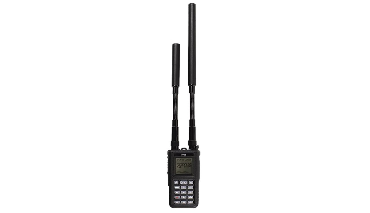 В комплекте поставляются две антенны для разных частотных диапазонов (большую антенну следует устанавливать на разъем, помеченный красным уплотнительным кольцом). Для корректной работы детектора необходимо установить обе антенны так, как показано на рисунке.