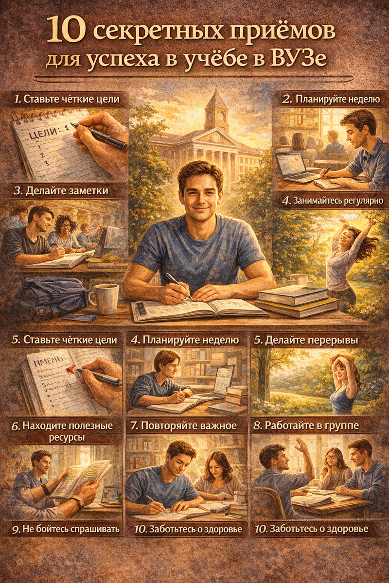 Поступление в вуз для многих становится началом новой жизни. Больше свободы, меньше контроля — и одновременно больше ответственности. Уже на первом курсе становится понятно: одних лекций и конспектов недостаточно. Чтобы действительно успевать, не выгорать и получать хорошие результаты, важно выстроить собственную систему обучения. Ниже — 10 проверенных приёмов, которые помогают студентам учиться эффективнее и выделяться среди одногруппников. Универсального расписания не существует. Кто-то лучше воспринимает информацию утром, кто-то — поздно вечером. Прислушайтесь к себе и распределите учебную нагрузку с учётом своих биоритмов. Используйте цифровые календари, напоминания и планировщики — они реально экономят время и снижают стресс. Совместная подготовка к экзаменам и обсуждение тем помогают взглянуть на материал под другим углом. Часто именно в группе становится понятно то, что в одиночку «не доходило». Главное — выбрать мотивированных людей, а не превращать встречу в бесконечные разг