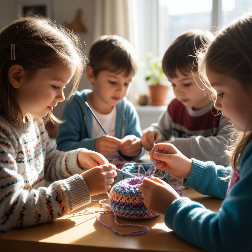 Воскресенье. Второй день вязального кружка. Но сегодня у меня — только новички. Именно в воскресенье я стараюсь минимизировать отвлекающие факторы, чтобы каждая маленькая рукодельница, которая только ступила в этот уютный мир ниток и крючков, получила максимум внимания, терпения и поддержки. Ведь вязание — это не просто умение. Это первые шаги в мире терпения, концентрации и веры в себя. К сожалению, сегодня не пришла Есения — она заболела. От всей души желаю тебе, моя маленькая мастерица, скорейшего выздоровления Ждём тебя с нетерпением, с новыми силами и, конечно, с твоим добрым упорством. А у нас сегодня — Дашенька. Девочка очень старательная, с огоньком в глазах, но… крючок никак не поддаётся. Петельки путаются, нитка скользит, движения не слушаются. Но мы не сдаёмся. Мы пробуем снова и снова — воздушные петли, самые первые, самые важные. Те, с которых начинается всё вязание. Я стараюсь не просто учить, а подбадривать, потому что знаю: если ребёнок почувствует, что «у меня не пол