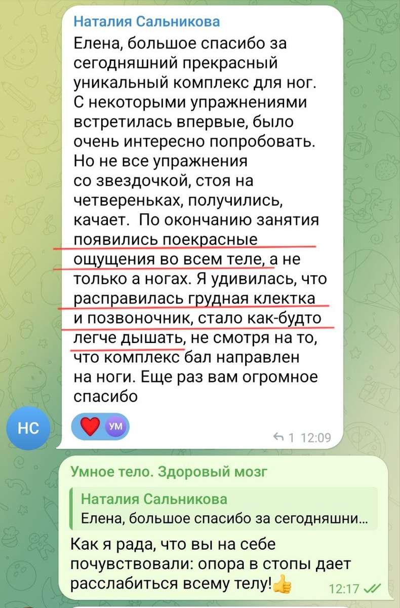 Очень ценный для меня комментарий после вчерашней тренировки с акцентом на стопы и баланс