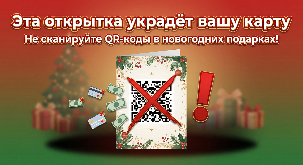 Там — простая форма: «Введите номер карты и CVV для подтверждения подарка» Вы думаете: «О, сюрприз от родных!» — и сами отдаёте доступ к деньгам. 🔥 Настоящие магазины НИКОГДА не просят CVV через QR-код в бумажной открытке. НИКОГДА. В прошлом году за декабрь в Роспотребнадзор поступило более 1 200 жалоб на подобные схемы.