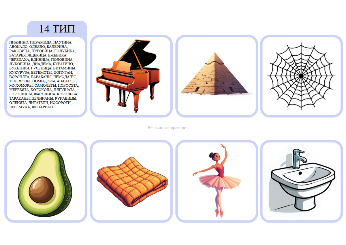 Ниже представлена подборка слов 10 типа слоговой структуры в картинках.