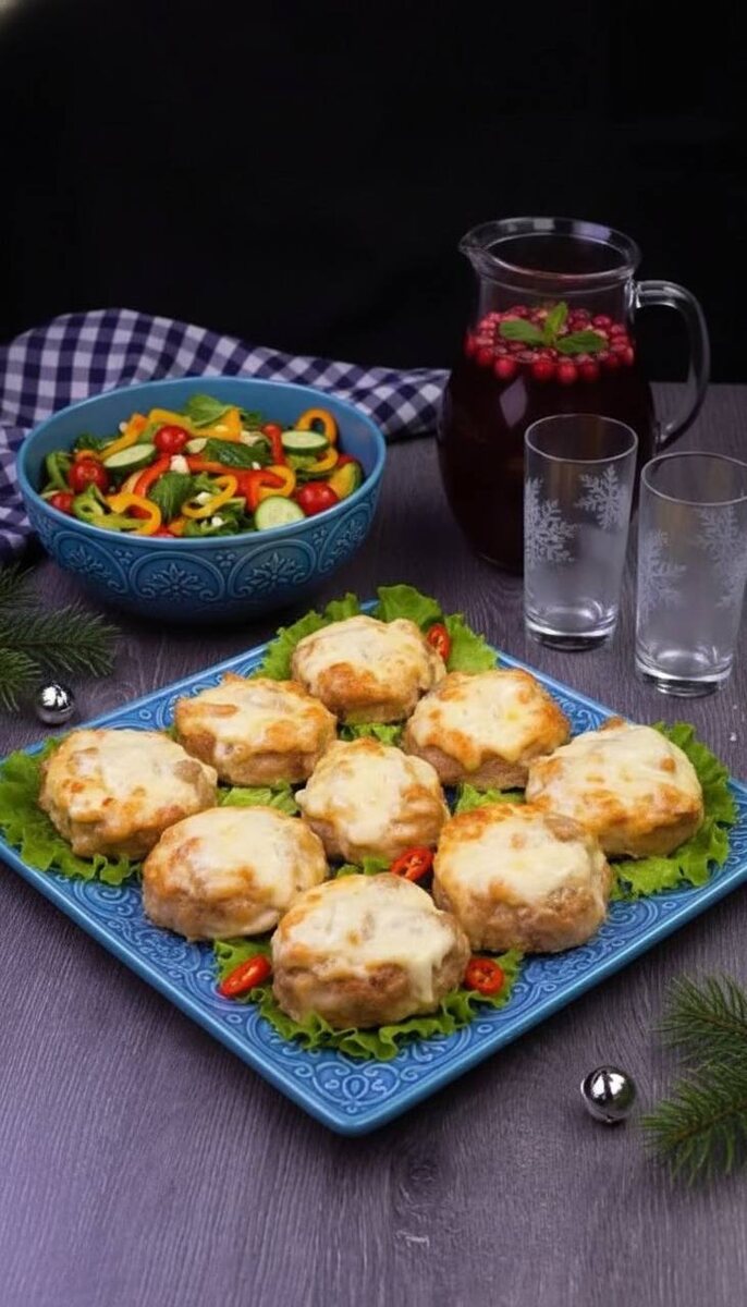 Свиная корейка с плавленым сыром и маринованными грибами