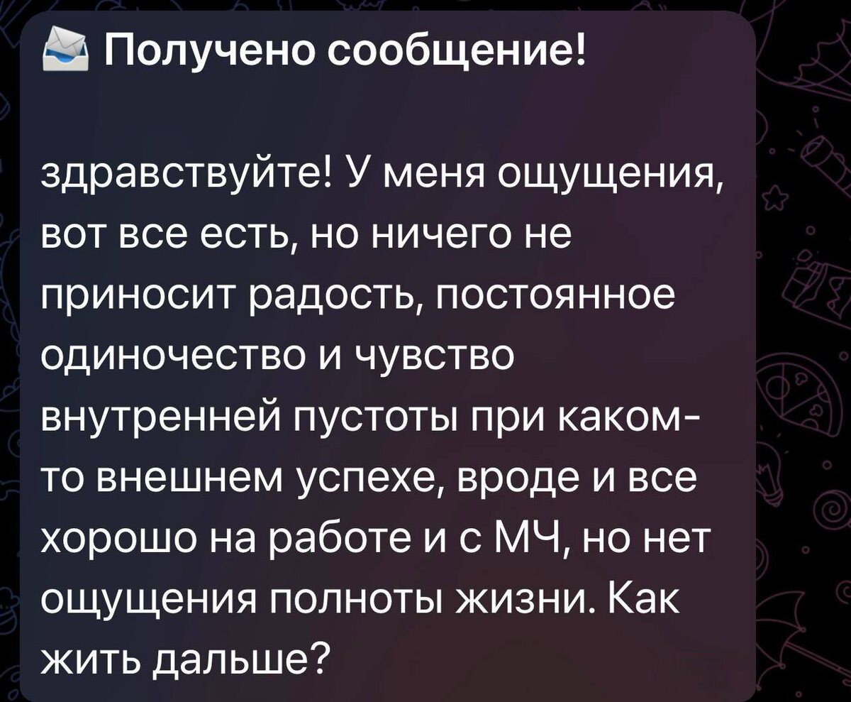 Здравствуйте! Вы описываете состояние внутренней пустоты, одиночества и утраты радости на фоне внешнего благополучия. То, что вы описываете, часто сопровождается усталостью, ощущением оторванности от себя и ощущением, что жизнь проходит мимо, хотя формально все сложилось. Могу сказать, что подобное состояние возникает, когда вы долго живете, опираясь на ожидания, роли и цели, которые хорошо работают снаружи и социально одобряемы, но слабо связаны с вашими истинными внутренними потребностями. Наша психика умеет обеспечивать эффективность, адаптацию и успех, но при этом может откладывать живые чувства и желания. В таком случае энергия уходит на поддержание стабильности, а не на проживание происходящего. Получается, что ваша пустота появляется не потому что внутри ничего нет, а потому что важные части вашей личности долго не получали внимания. С вами не происходит ничего патологичного и нет, вы не разучились радоваться. Такое состояние нередко возникает у людей зрелых, ответственных и вне