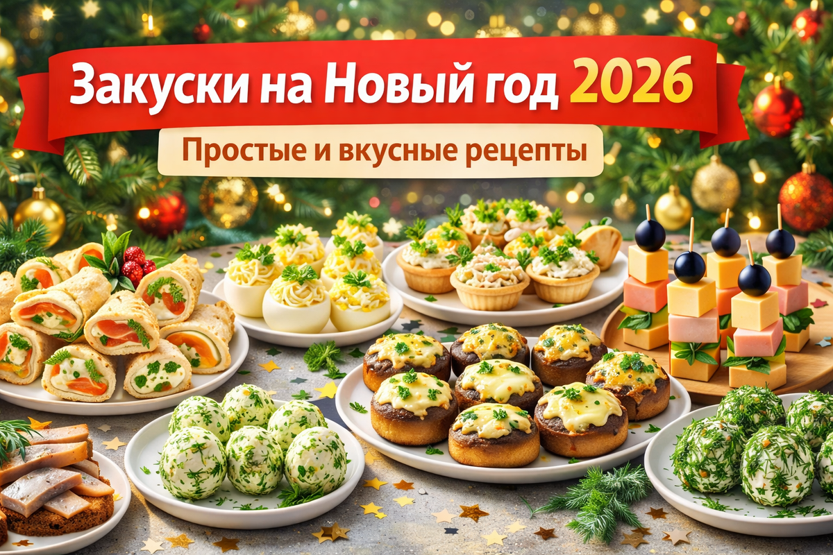 Новый год — это не только горячее и салаты, но и вкусные закуски на праздничный стол, которые разлетаются первыми. Если вы не хотите полдня стоять у плиты, но при этом мечтаете удивить гостей, эта подборка — для вас. Я собрал простые и вкусные закуски на Новый год 2026, которые легко приготовить из доступных продуктов. Эти закуски отлично подойдут и для семейного праздника, и для шумной компании. Ингредиенты: Как готовить: