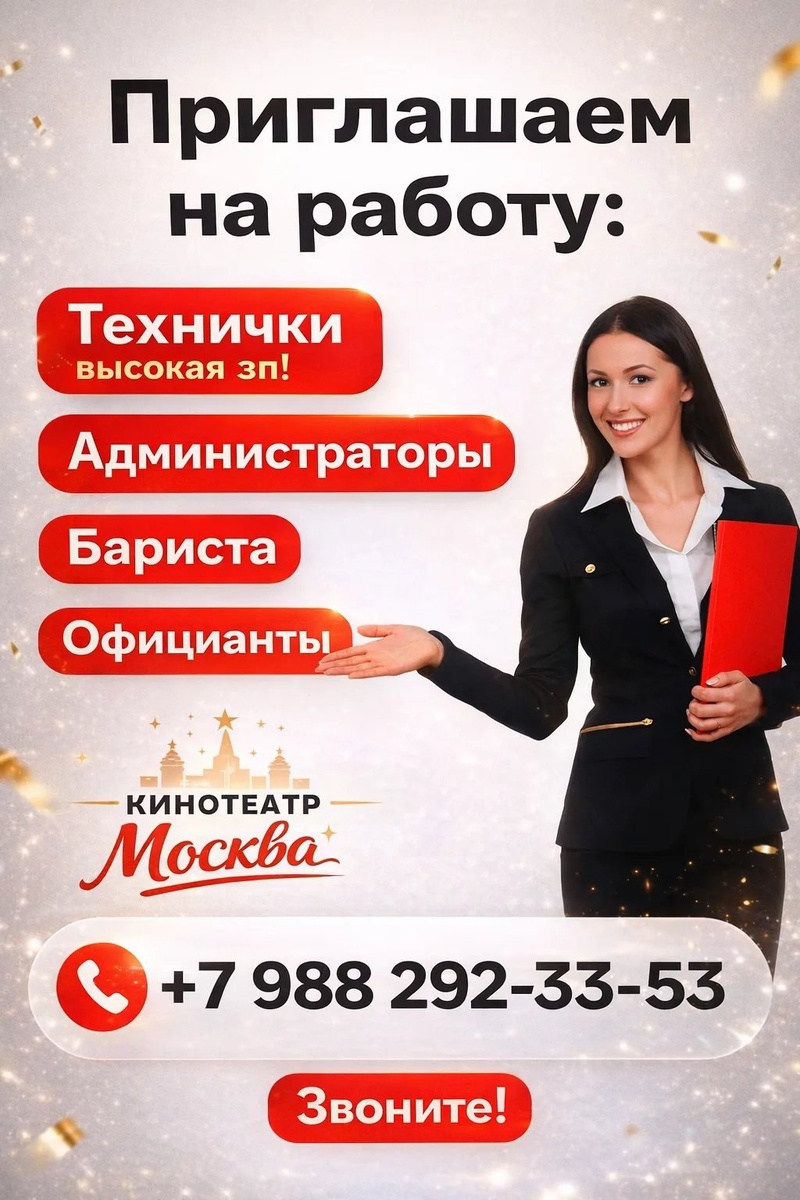 : ⭕️ техничка (высокая зарплата); ⭕️ администраторы; ⭕️ бариста; ⭕️ официанты. Звоните по телефону: 📱8-988-292-33-53 в рабочее время. =========================================⠀ #вакансия #вакансиятехничка #вакансияадминистратор #вакансиябариста #вакансияофициант #крцмосква #каспийск