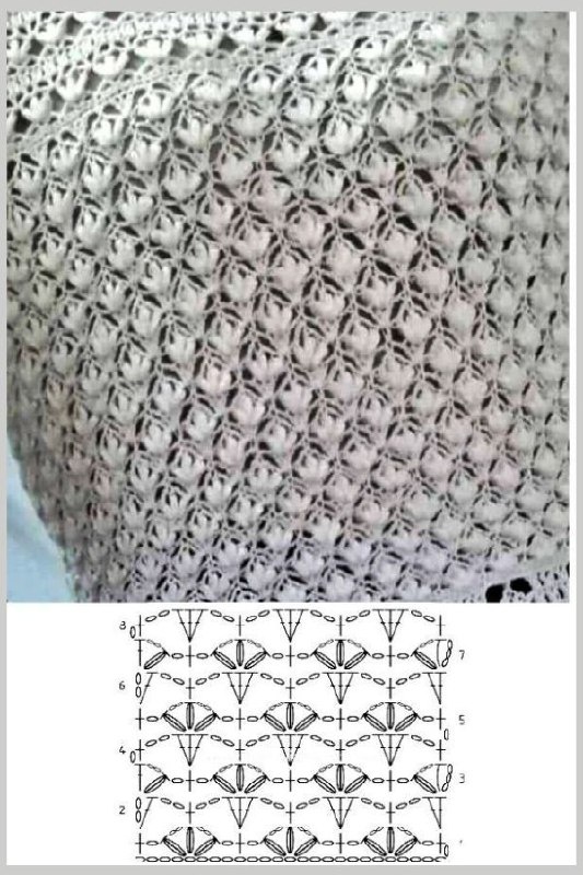 Подойдёт и для палантина ( жалко, что я уже начала вязать другим узором), и для топика, и для платья. Мне кажется, особенно красиво будет смотреться сочетание этого узора с простыми столбиками с накидом.