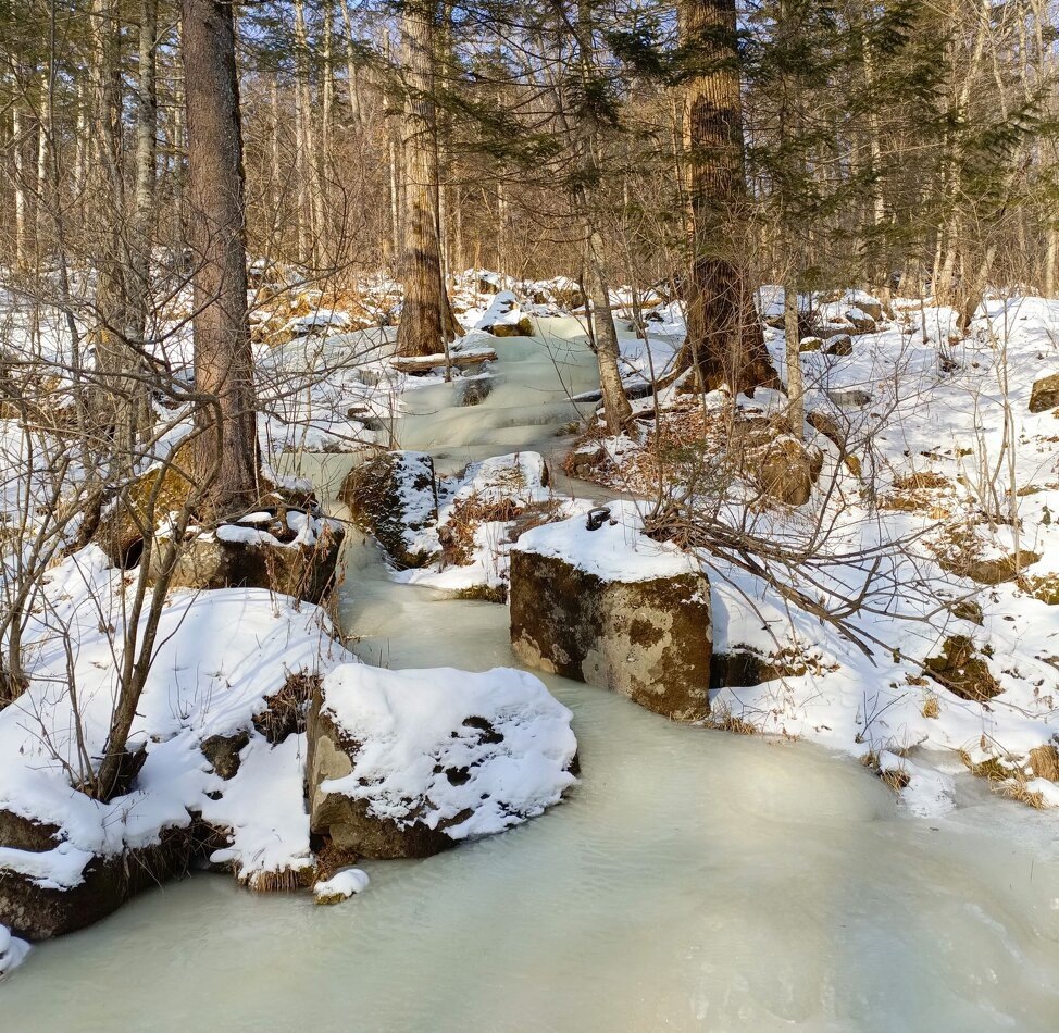 Спонтанно как-то решилось сегодня, поехали с дочкой на водопады. А чего дома-то сидеть, погода, кстати, отличная, хотя с утра было холодно, минус 10 с ветром. А тут ещё зимнее солнцестояние, 21 декабря. Кто-то верит, кто-то нет, а я просто чувствую )) Это мы уже приехали, идём по ключу Горбатому Когда подходишь к водопаду Неожиданный, то появляются такие шестигранные столбы: А вот и сам водопад Неожиданный, место волшебное: Здесь даже можно встретить петроглифы - наскальные рисунки древних людей. Хотя дочка стала спорить, что никакие они не древние, а глупые... ну там другое слово было. Оказывается снеговики не всегда мальчики, но встречаются и девочки: А это следующий водопад, называется Тигровый. Кстати, называется так неспроста, тигров здесь встречают. Пора собираться домой, ещё раз глянули в долину и в обратную дорогу )