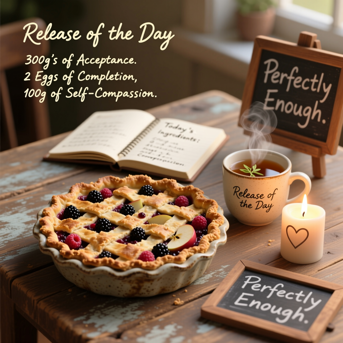 Рецепт от шеф-повара Адекватных Ожиданий Когда день подходит к концу, а внутренний критик начинает подсчитывать все «недоделанное» и «неидеальное», самое время испечь этот уютный пирог. Он не требует звезды Мишлена, и гарантированно дарит чувство завершенности и покоя. (на 1 порцию умиротворения) 300 г муки «принятия»