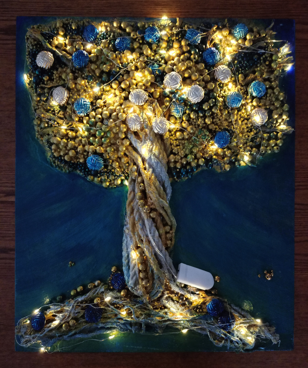 Наверное, это весьма странная идея... Когда я выбирал краску для этого дерева на маркетплейсе, мне в рекомендациях попалась гирлянда, и я заказал её чтобы попробовать сделать это 🤷♂