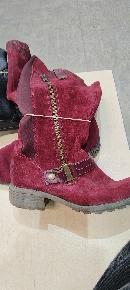 1. Сапожки из натуральной замши, красивого брусничного цвета. В идеале. Остались в магазине. Наверное размер никому не подошел, а это был 36- й.