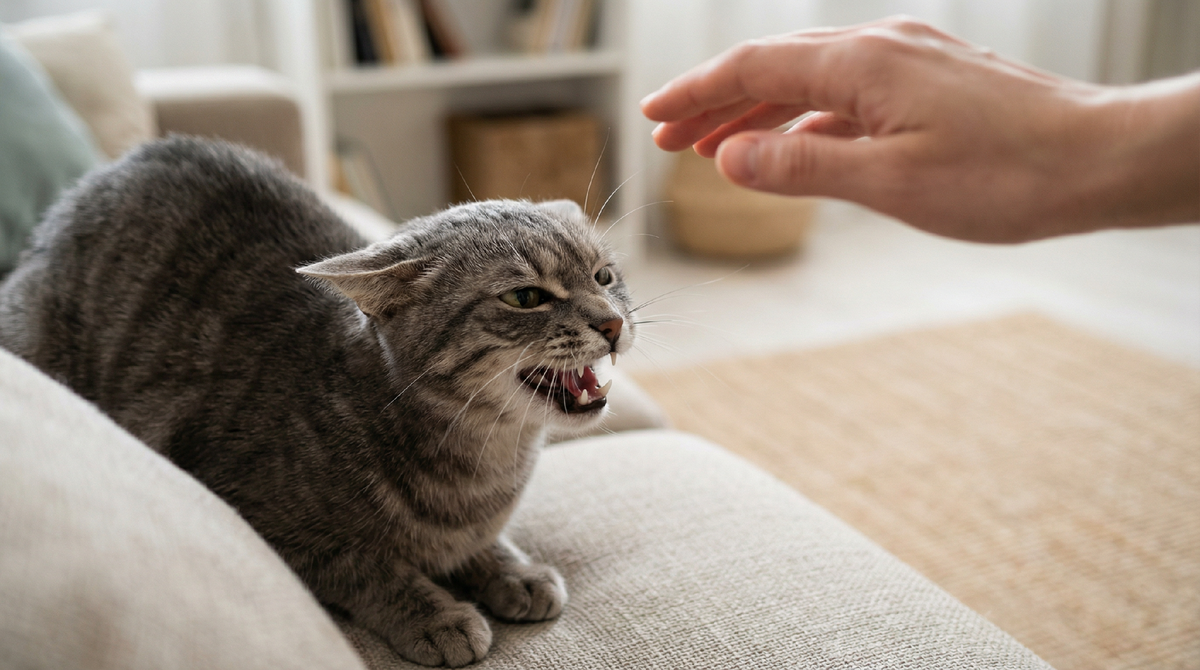 Громкие звуки и резкие жесты — кошка теряет контроль над ситуацией