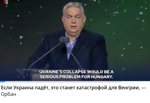 "Орбан заявил, что падение Украины стало бы "катастрофой" для Венгрии из-за энергетических связей. (...) Поэтому крах Украины не только не отвечает интересам Венгрии, но и мы должны добиться отличной сделки, чтобы это предотвратить это".