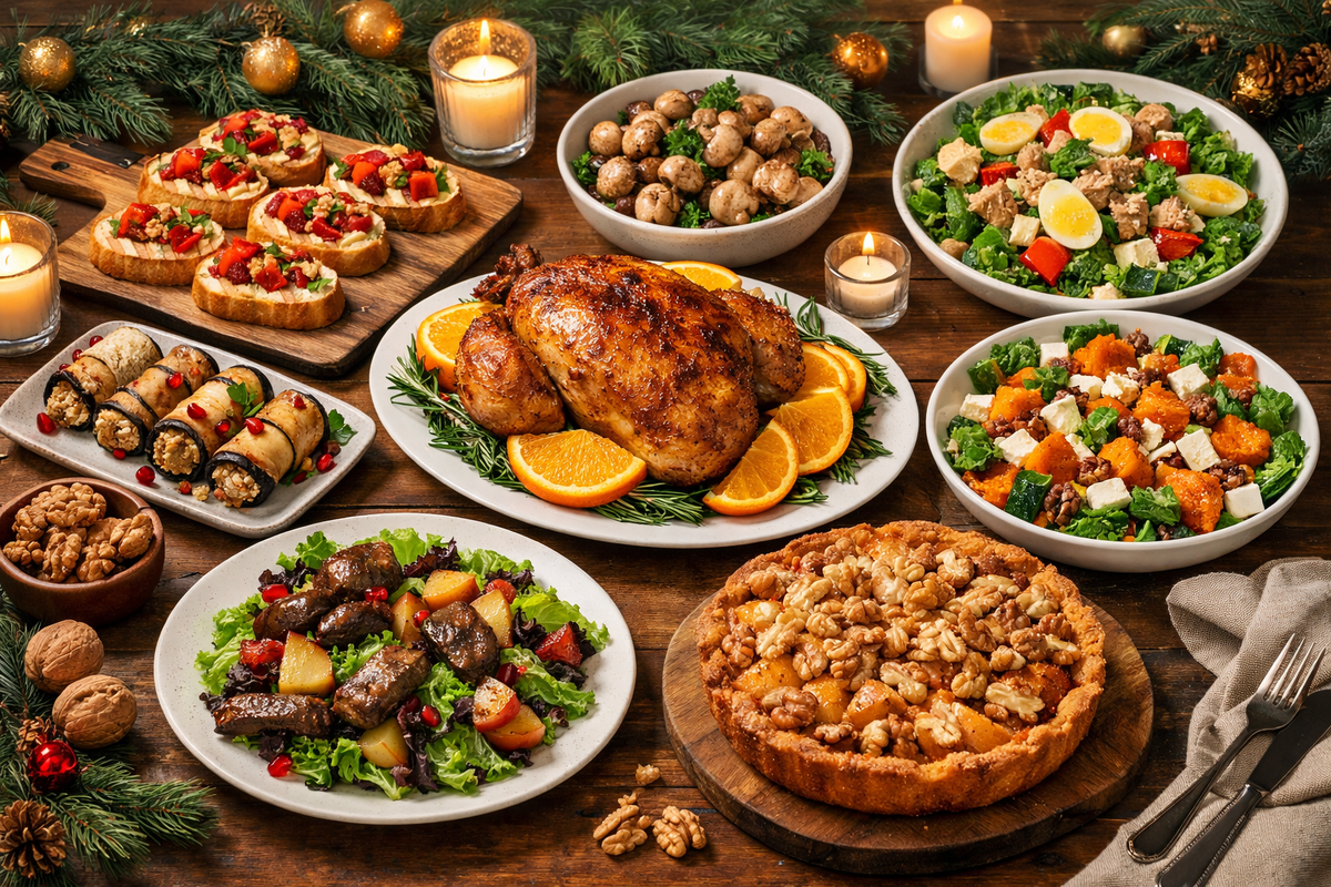 новогоднее меню 2026, что приготовить на новый год, праздничный стол новый год, современное новогоднее меню, блюда на новый год, новогодние салаты без майонеза, закуски на праздничный стол, горячее блюдо на новый год, простой новогодний десерт