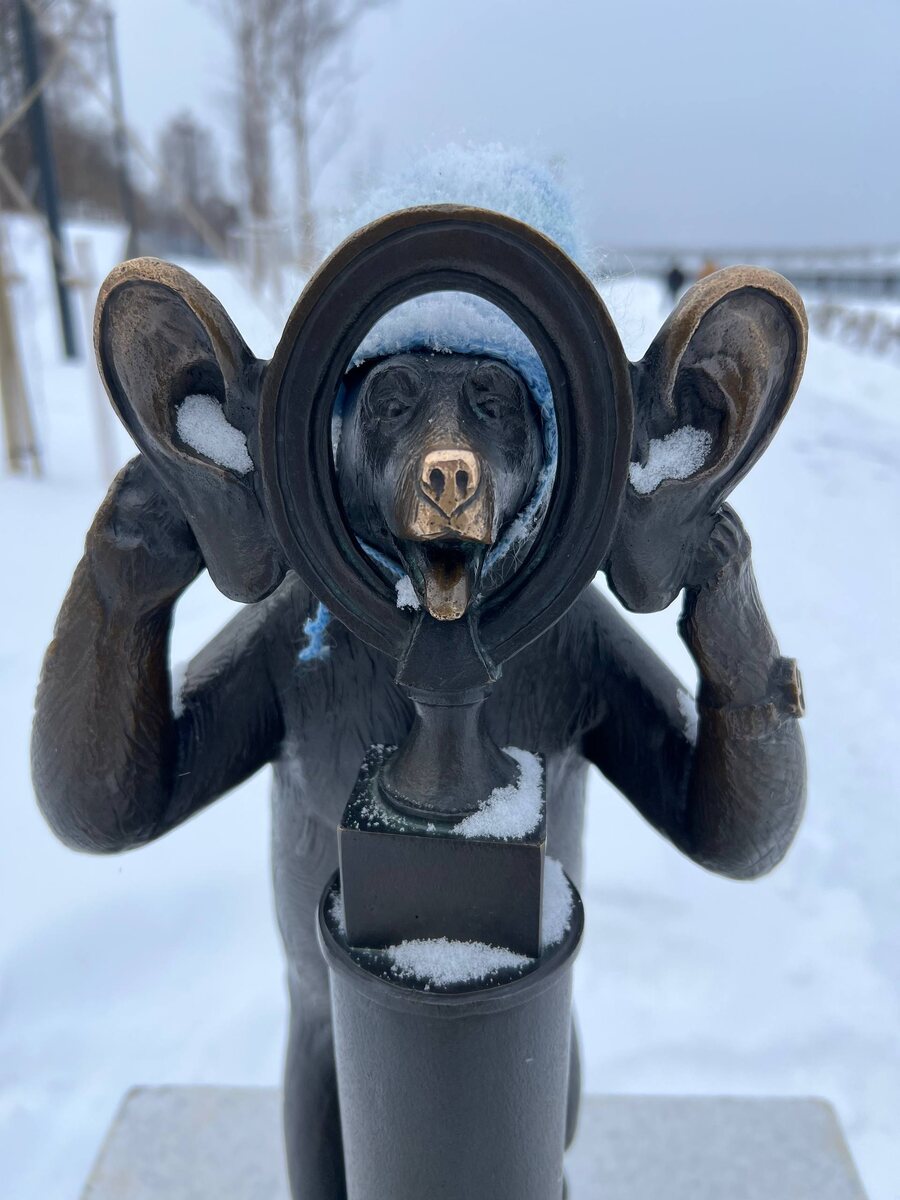 Привет, это снова Марина из Нижнего. Увидела пост про гусей в Арзамасе, и стала вспоминать, в каких еще городах есть подобное туристическое развлечение. Конечно же, вспомнились хомлины из Калининграда, а еще колобки из Ульяновска и барсики из Пскова. А совсем недавно я побывала в Перми, и там обнаружила фигурки милых медведей. Медведь — символ Пермского края. Это образ природных богатств региона, а это не только леса и дикие животные, но и металлы и камни. Найти бронзовые фигурки можно около Пермского речного вокзала. Всего медведей на набережной Камы десять, но мне не удалось отыскать всех в декабрьских сугробах. Зато я увидела: ✔ Медведь, который позирует с уменьшенной копией памятника «Пермяк - соленые уши». Это традиционное прозвище пермяков, ведь в крае еще с XV века добывали соль. Нагруженные мешки на своих плечах на камских пристанях носили грузчики, а соль щедро «солила» головы, шеи и уши; ✔ Мишка с пирожком, да не простым, а местным специалитетом — посекунчиком. Есть версия,