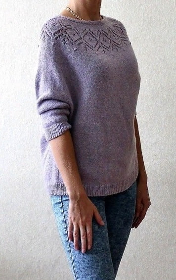 👆👆👆 Описание джемпера спицами с круглой кокеткой и подбором пряжи в моем телеграме