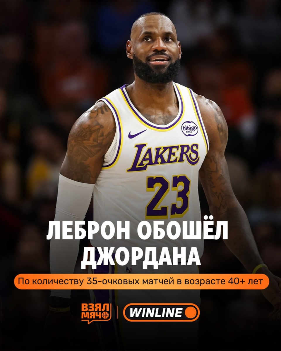 ! Благодаря 36 очкам в сегодняшней игре с «Клипперс» форвард обошёл легенду по количеству матчей с 35+ очками в возрасте 40+ лет. У Джеймса 4 таких игры, у Джордана — 3. Этот список состоит всего из двух игроков. 💁🏻♂️ 🏀 ПОДПИШИСЬ — ЗДЕСЬ ЖИВЁТ БАСКЕТБОЛ!