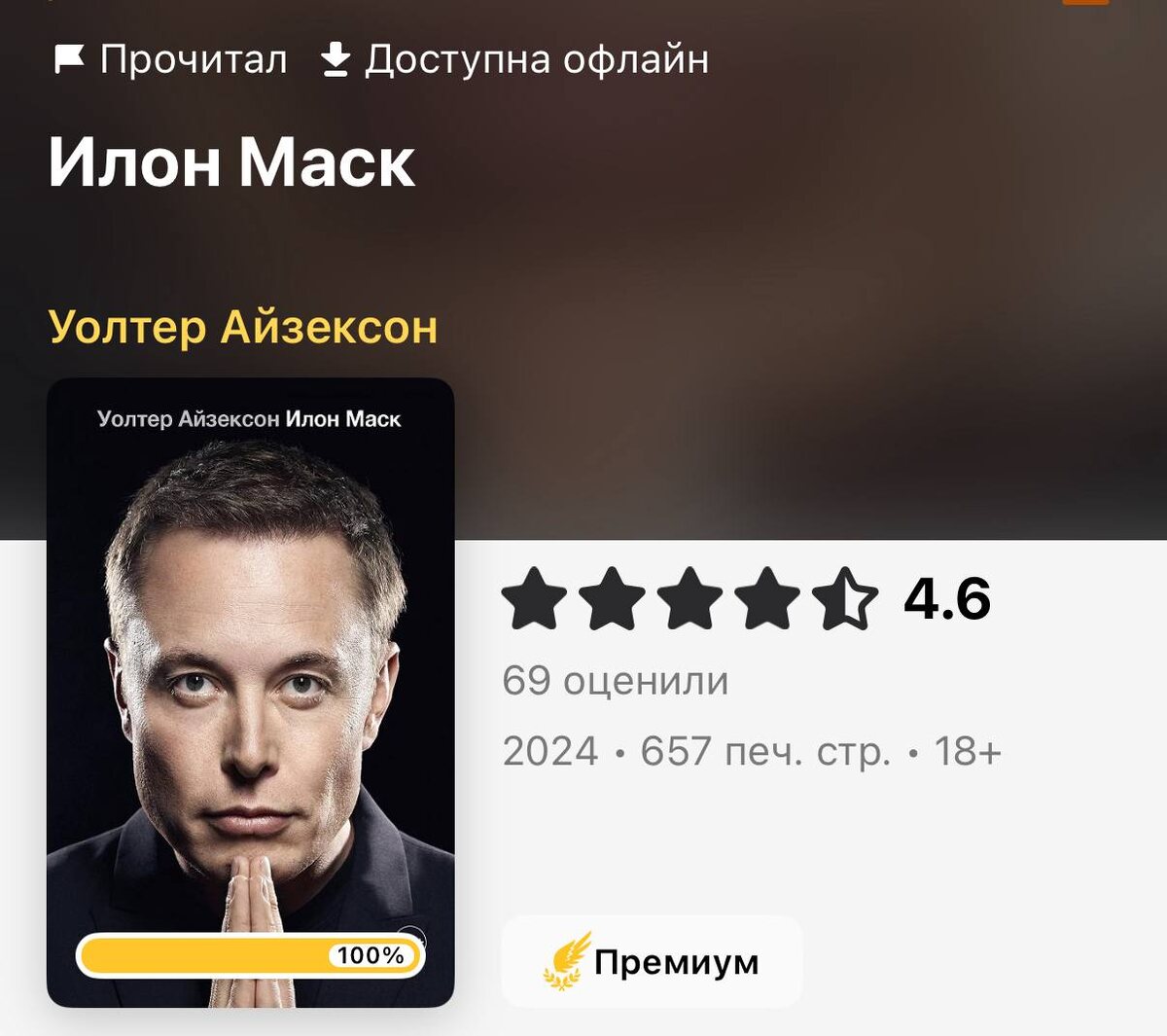 Если очень коротко: охренеть. Пример человека, который вообще не допускает мысли, что что-то невозможно. Если что-то не сделано, значит никто всерьез не старался этого сделать. Всю книгу зачитывала мужу кусочки, чтобы не в одно лицо охреневать 😁 Человек, который как будто всю свою жизнь опережает время. «если мы будем с этим возиться, я при жизни так и не попаду на Марс…» Книга конечно крутейшая, мое уважение автору - два года он буквально был тенью Маска, совсем непростого человека. Но читать трудно - просто в обычную человеческую голову с трудом умещается такой поток событий - если первые лет 25 в жизни Илона Маска хотя бы как-то похожи на привычную жизнь, то последние пять это просто взрыв мозга - одновременные стройки заводов, запуски ракет, разработки нейрочипов, рождение детей, покупки соцсетей и, конечно, человекоподобные роботы, солнечные крыши, бурение подземных тоннелей и прочие тысячи спутников для беспроводного интернета 😅 Главное, чему я хотела бы научиться у Маска -