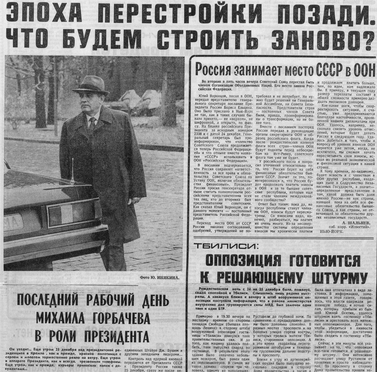 «Газеты – консервы времени» (Карл Краус) 25.12.1991 – Известия На следующий день после создания СНГ публично признал свое политическое поражение и ушел в отставку первый советский президент Михаил Горбачев. В России началось правление Ельцина. 25.12.1966- Московская правда 1930, декабрь – Огонёк 25.12.1934 – Работница Осенью 1934 года в СССР проводились выборы в сельские и городские советы. С 15 по 25 декабря прошли съезды советов областей, краев и автономных республик. На гербе Советского Союза пока шесть лент. 25.12.1957 - Огонёк 25.12.1967 - Огонёк 25.12.1991 – Московская правда 25.12.1985 – Известия Угон совершил второй пилот Шамиль Алимурадов (33 года). В Китае его арестовали, осудили на восемь лет, в 1989 году передали в СССР, где повторно осудили на пять лет. При происшествии никто не пострадал, китайцы вернули самолет в Советский Союз в январе 1986 года. 25.12.1939 – Комсомольская правда 25.12.1925 – Рабочая Москва 25.12.1979 – Вечерняя Москва Премьера легендарного советского м