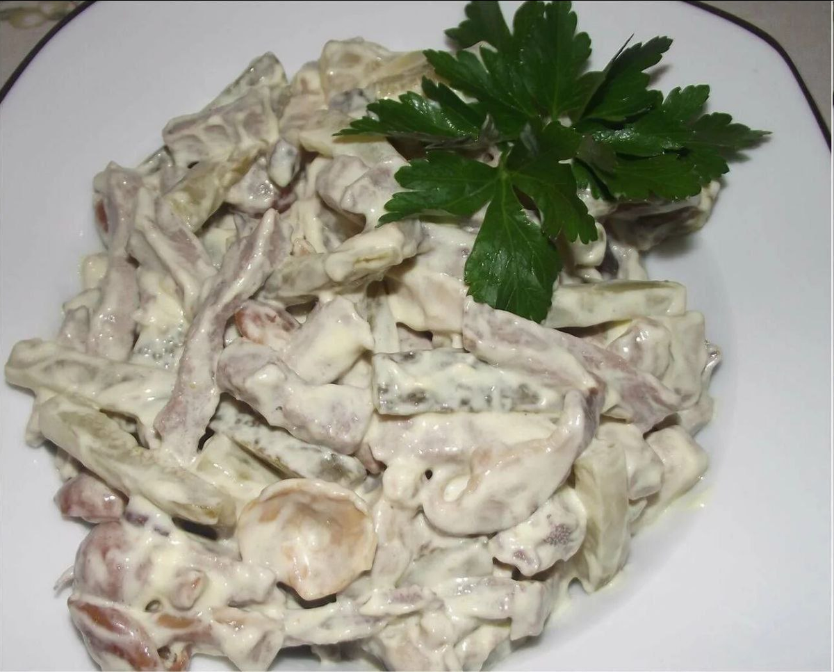 При нехватке времени этот рецепт салата просто спасает. Быстрый в приготовлении салат "Охотничий" очень вкусен и легко съедается. Гости его точно оценят!)