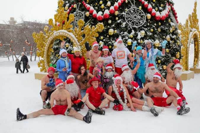 Полуголые Деды Морозы и Снегурочки пробежали по центру Новосибирска. Фоторепортаж