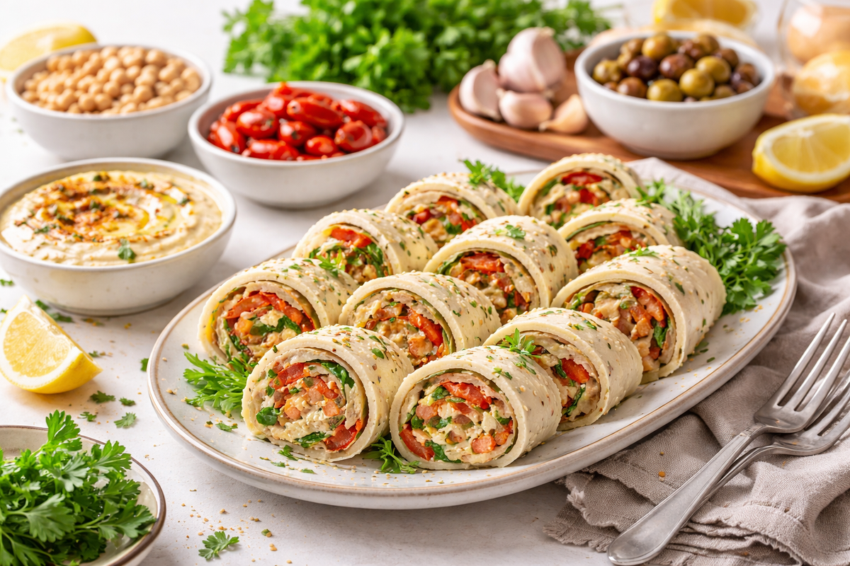 Есть закуски, которые выглядят как из хорошего кафе, а готовятся буквально за считанные минуты. Эти рулеты из лаваша как раз из таких. Нежный хумус, сладкий печеный перец и свежая зелень дают насыщенный вкус без тяжести. Отличный вариант и для праздничного стола, и для обычного ужина, когда хочется чего-то легкого, но не скучного.