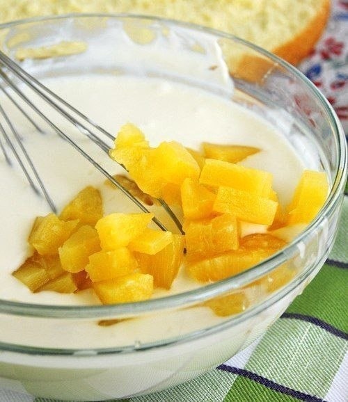 🥣♥️ Торт с нежнейшим творожным кремом Понадобится: Для бисквита: - 5 яиц - 1 ст. сахар - 1 ст. муки - 1 ч.л. тертой цедры лимона Для крема: - 20 г желатина - 150 мл воды - 300 гр творога - 5 ст л сахарной пудры - 250 мл сливок - консервированные ананасы Приготовление: 1. Белки взбить с сахаром до твердых пиков. По одному ввести желтки, хорошо взбить. Частями добавлять муку и аккуратно перемешивать. Вылить тесто в разъемную форму, застеленную бумагой. Не забудьте покрутить форму пару раз в какую-нибудь сторону. Выпекать 25-30 минут при температуре 180 градусов. Достать бисквит из формы. Убрать бумагу. Дать остыть полностью. Затем разрезать на два коржа 💖 Вкусная Жизнь