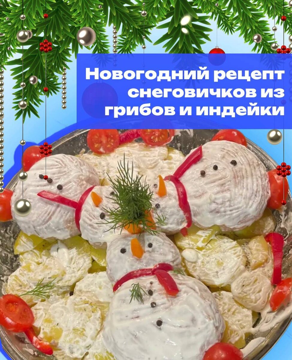 ✨ Сегодня я делюсь с вами рецептом, который может стать вашей маленькой новогодней традицией - «Снеговики из индейки». Это настоящее семейное творчество, в которое с радостью включатся дети! Идеально для детского стола: нежное мясо индейки богато белком и железом, а грибная начинка и овощной декор делают блюдо полезным и очень красивым. Готовить - одно удовольствие! Что понадобится (на 5-6 порций): ⏺️Для снеговиков: Фарш индейки (400 г), ½ луковицы, 1 маленькое яйцо, соль, перец, итальянские травы ⏺️Для начинки: Шампиньоны (250 г), сливочное масло (20 г), 1 ст.л. муки, молоко или сливки (70 мл) ⏺️Для гарнира: Картофель (500 г), сливочное масло (25 г) ⏺️Для украшения: Немного сметаны, морковь, болгарский перец, черный перец горошком, зелень Как готовить: 1️⃣ Фарш: Лук мелко нарежьте, смешайте с фаршем, яйцом и специями. Хорошо вымесите 2️⃣ Начинка: Грибы обжарьте до золотистости. Добавьте масло, муку, размешайте и влейте молоко. Потушите 2-3 минуты до загустения, остудите 3️⃣ С