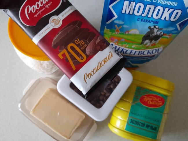 Кофейный трюфель — домашние конфеты на основе шоколада и кофе. Готовится лакомство просто и быстро. Ингредиенты: горький шоколад — 80 — 100 г., сгущённое молоко — 100-150 г., сливочное масло — 20-25 г., молотый кофе — 2 ст.л., ванильная или миндальная эссенция — по желанию, какао-порошок или кокосовая стружка — для покрытия. Из этого количества получится примерно 15 небольших конфет. На водяной бане нагреть шоколад, сливочное масло и сгущённое молоко. Если масса слишком густая, можно добавить ещё сгущёнки. Помешивать до объединения. Добавить свежесмолотый кофе (помол самый мелкий). Вымешать до однородного состояния. По желанию можно добавить несколько капель ванильной или миндальной эссенции, немного ароматного алкоголя или любимые молотые специи. Также по желанию можно добавить немного молотых орехов или кокосовую стружку. Массу остудить. Из застывшей массы скатать небольшие шарики, и обвалять в кокосовой стружке или порошке какао. Хранить трюфели в холодном месте в закрытом контейнер