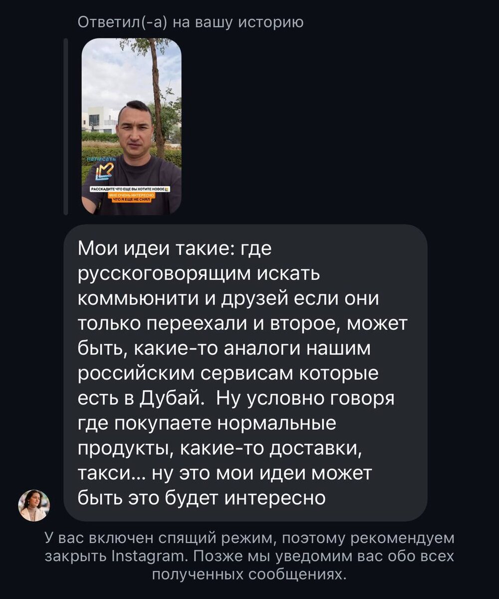 🙌 Недавно делал опрос и писал: «Напишите, какие темы вам реально интересны и какие ролики вы хотите видеть на YouTube». И вы очень сильно откликнулись. Я сейчас читаю ваши ответы — и, честно, это очень интересно и очень по делу. Много конкретных вопросов, реальных болей и тем, которые вам действительно важны. Я для себя уже много полезного взял. Скоро всё это структурирую и буду снимать ролики именно по вашим запросам, а не просто «в общем про Дубай». Почитайте, что вы сами написали 👇 (скриншоты ниже) Это как раз ваш интерес, ваша боль и то, что вам реально нужно. Так что дальше — больше конкретики и контента под вас. Если еще есть идеи — пишите в личку или реагируйте на пост ❤️