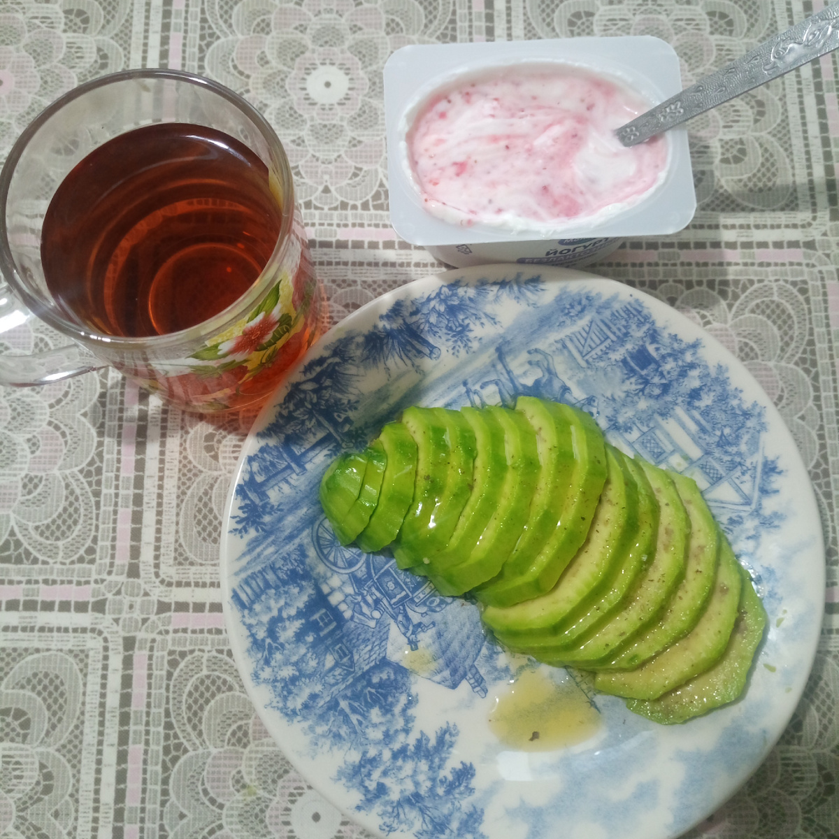 Утро началось с завтрака. Кашу не варила. Бабуля тоже не захотела. У меня был тыквенный крем-суп ( без фото). Съели его. Авокадо и йогурт, в который я добавила перетëртую клубнику. Очень вкусное сочетание кисломолочной продукции с такой клубникой.