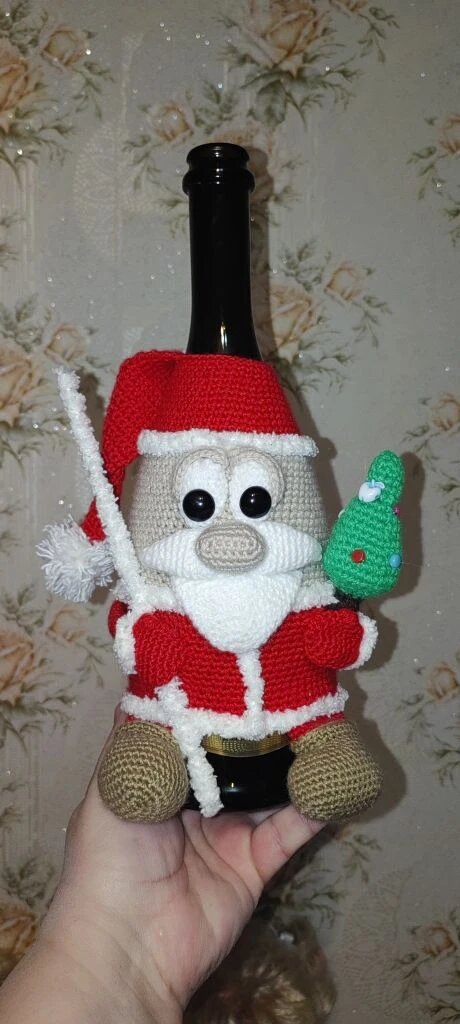 Приветствую мои дорогие читатели, хранители тепла, уюта и волшебства 🌟 Сегодня с особым трепетом хочу представить вам моего первого Деда Мороза — не в валенках и не за столом с подарками, а в необычном образе: вязаного чехла на бутылку шампанского, рождённого по моему собственному мастер-классу. Да-да, именно первого — потому что это первая работа в таком формате, придуманная, спроектированная и доведённая до конца мной самой. И, как водится у многих мастериц, вязание деталей шло легко, с вдохновением: шапочка — пушистая, борода — как снежная вата, туловище — уютное, с румянцем зимнего холода на щеках. Но… признаться честно — сборка снова оказалась для меня тем самым моментом, который я, как и многие из вас, всегда откладываю.