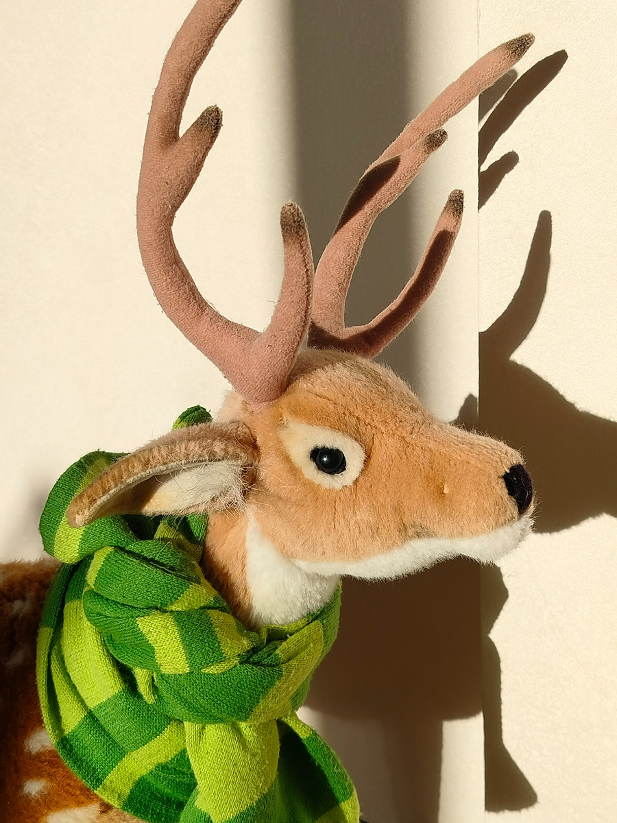 Вот такой красавец-олень нашел новый дом. Высокий, около 60 см с рожками. Он у меня весь год лежит в коробке, а перед НГ становится под ёлочку. В этом году он очень заинтересовал моих двойняшек) они с ним и в прошлом году играли, но особого ущерба себе нанести не могли. А теперь Ярослав все время пытается его оседлать, копыта у оленя от этого разъезжаются и Ярик падает и плачет.