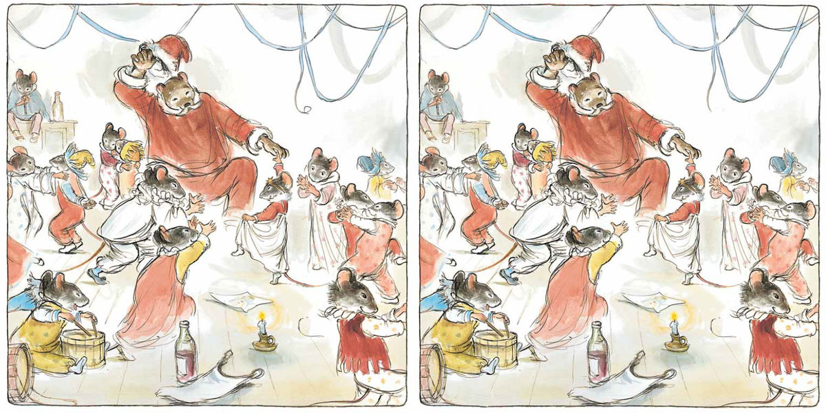 "Найди 5 отличий": проверка себя в веселой игре из детства по иллюстрациям к милой и доброй книге “Эрнест и Селестина. Рождество”