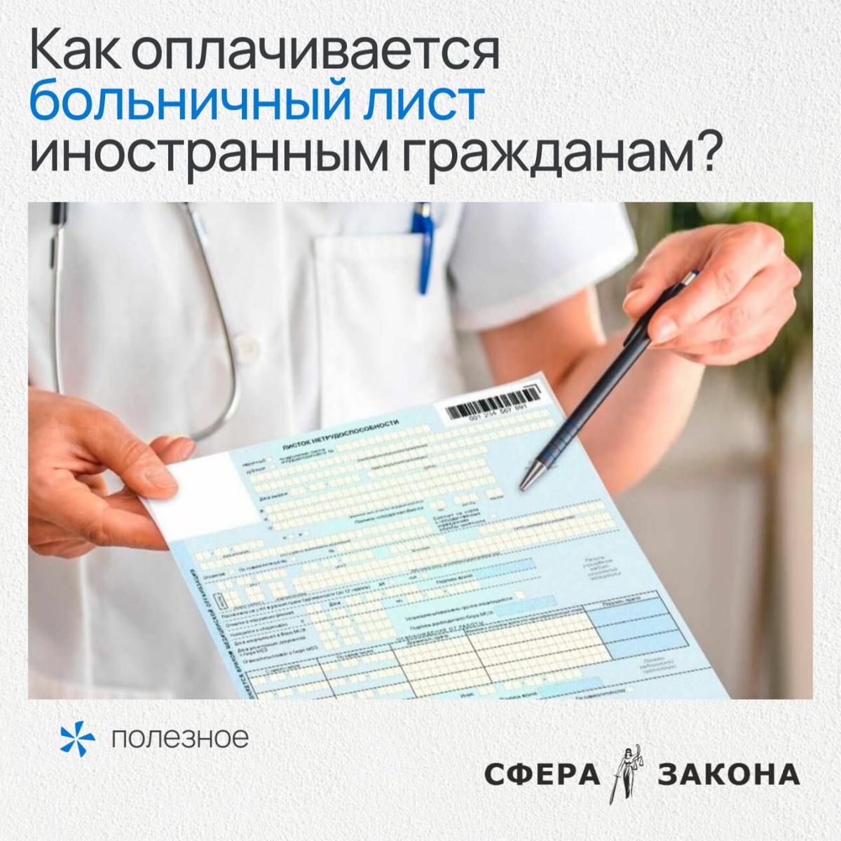? 1️⃣ Для постоянно или временно проживающих иностранцев (имеющих вид на жительство или разрешение на временное проживание) правила оплаты больничного полностью совпадают с правилами для граждан РФ. 2️⃣ Для временно пребывающих иностранцев (например, работающих по патентам или визам) есть дополнительное требование: страховые взносы за них должны уплачиваться не менее шести месяцев до месяца наступления нетрудоспособности. Этот стаж может быть накоплен у разных работодателей и не обязательно непрерывно. 3️⃣Особые правила для граждан стран ЕАЭС (Беларусь, Казахстан, Армения, Кыргызстан). Для них, включая высококвалифицированных специалистов, действует национальный режим. Они имеют право на пособие наравне с россиянами с первого дня работы по трудовому договору, без обязательного шестимесячного периода уплаты взносов. ❌ Кто не имеет права на пособие Право на оплату больничного листа не распространяется на временно пребывающих высококвалифицированных специалистов (кроме граждан ЕАЭС),