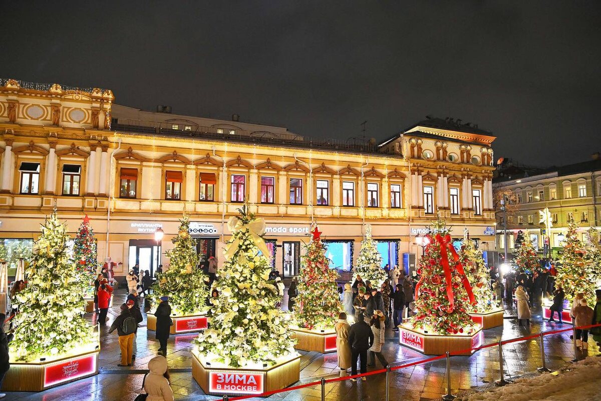 ❄️ На улице Кузнецкий Мост открылась традиционная выставка дизайнерских елей в рамках фестиваля «Путешествие в Рождество