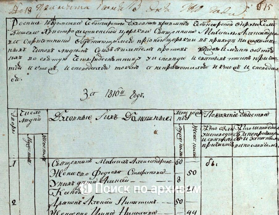 1810 год. Село Бишево. Чебоксарский уезд. Священник Михаил Александров.