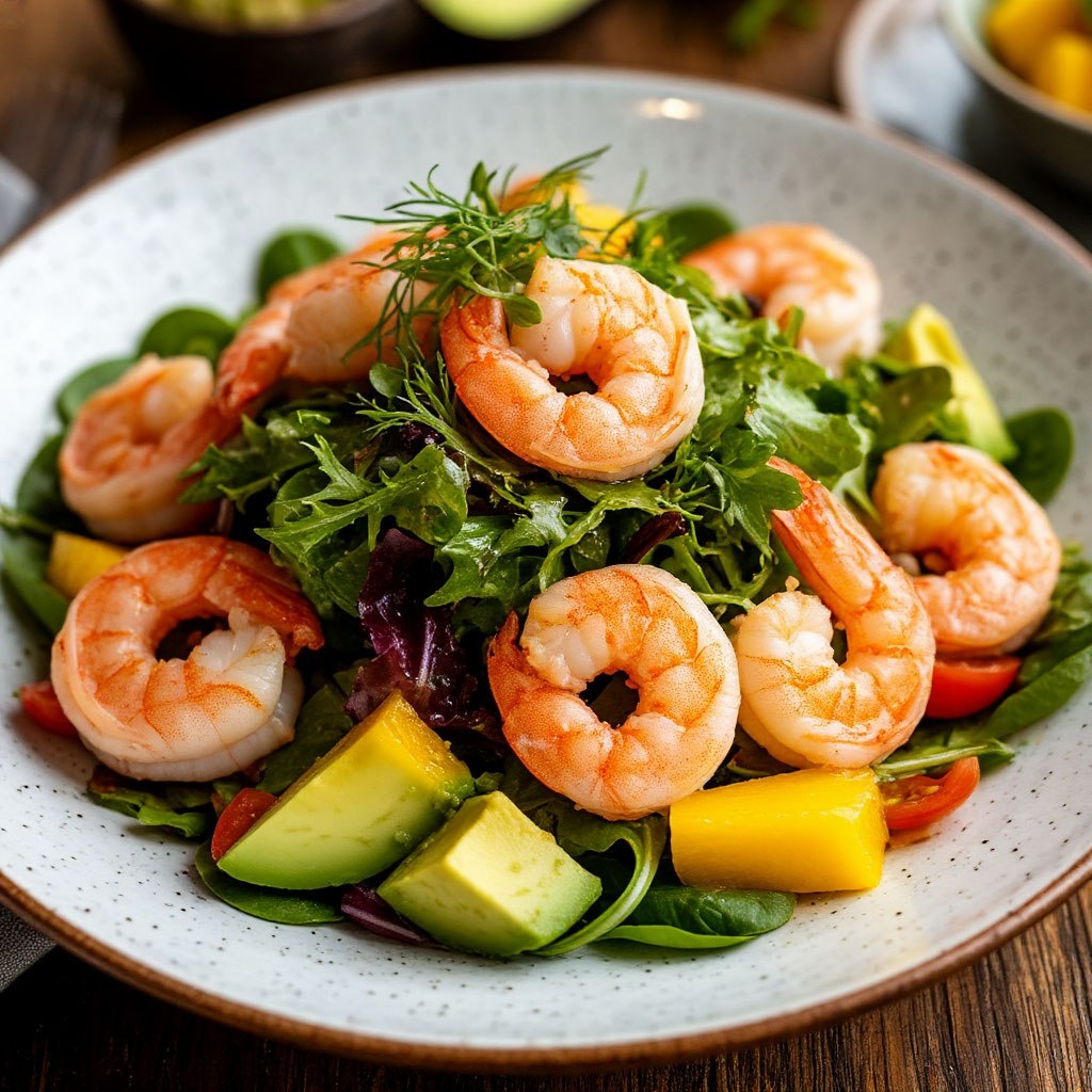 🎄 Низкокалорийный салат с креветками, авокадо и манго