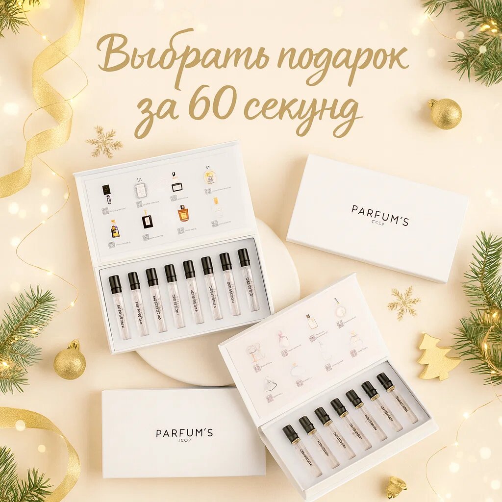 Формат PARFUMS BOX как раз про это: в одной коробке собраны мини-ароматы, которые можно спокойно примерить дома, без спешки и посторонних мнений. Человек получает небольшой парфюмерный гардероб, тестирует в разное время дня и сам выбирает фаворитов.