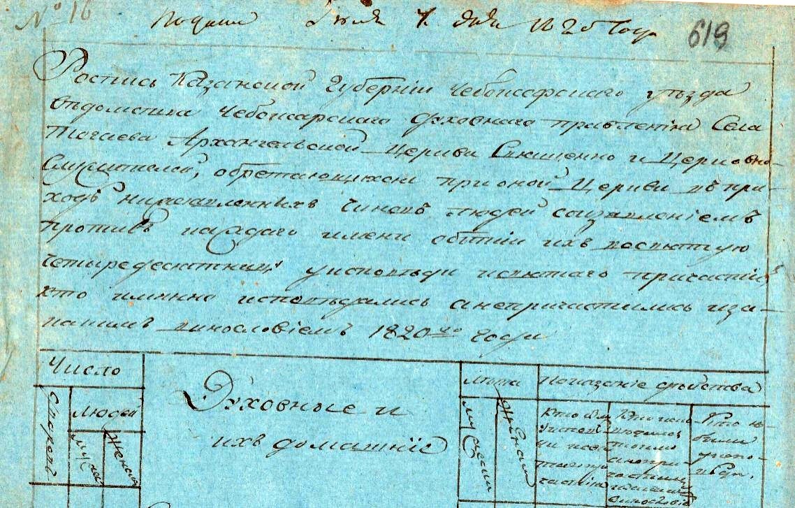 ГИА Чувашской Республики (ГИА ЧР), фонд № 225, опись № 7, дело № 41, стр. 1263 скан. Подана июля 7 дня 1820 года. Роспись Казанской Губернии Чебоксарского уезда ведомства Чебоксарского духовного правления села Тогаева Архангельской церкви священно и церковно служителей обретающихся при оной церкви в приходе нижеявленных чинов людей со изъявлением против каждого имени о бытии их в Святую Четыредесятницу у исповеди и Святого причастия, кто именно исповедались а не причастились, и за каким винословием 1820 года. Духовные и их домашние. № 4. Дьячек Андрей Михайлов. 36. Жена Наталья Борисова. 37. У них дети: Михаил. 11. Иван. 5. Федосья. 7. Стр. 1264 скан. Дьячка Андрея Михайлова мать вдова попадья Федосья Степанова. 60. https://yandex.ru/archive/catalog/64fee21f-37a3-42a7-8673-58e47678d6a7/1263