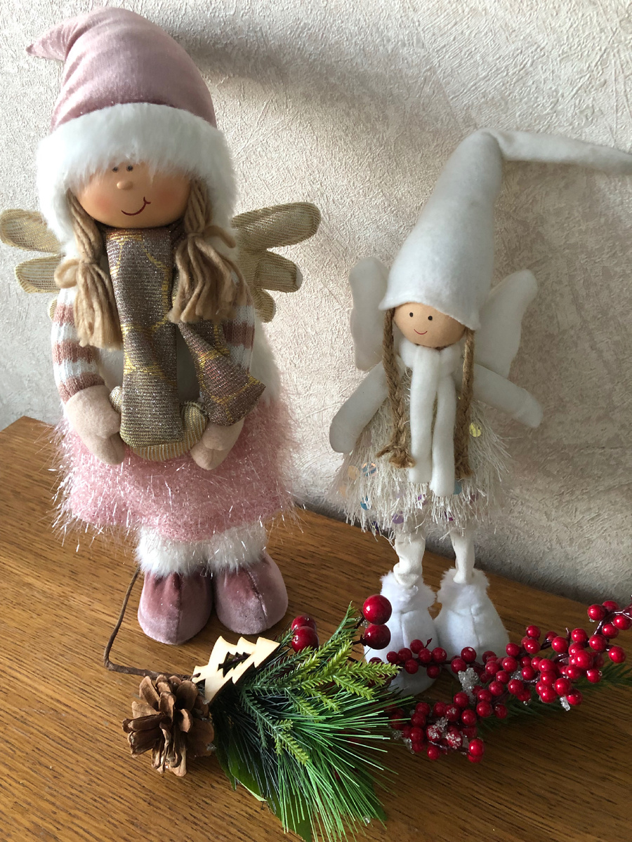 В Новый год хочется украсить свое жилище для создания атмосферы. Моя внучка любит куклы, кто они не понятно, просто забавные. Не Снегурочки, с крыльями, эльфики, может быть? Одеты явно по зимнему, значит только зимой появляются на радость девочкам. А это явно медвежонок, как же без него! Тоже одет, хотя зачем ему на природную шубу еще одежду? Симпатяшка. В Европе их называют Тедди. В 2010 гуляли по Парижу с французской подругой Нанси, на какой-то улице она показала маленький магазинчик, единственный в Париже с мишками Тедди. Там от потолка до пола на полках сидели только мишки разных размеров и многие со своими историями. Нанси любила туда заходить, такие мишки есть в каждой семье, сказала она. Для меня это был штрих культуры, не более.В нашем детстве - 50е годы - игрушек было ничтожно мало. Я хотела куклу, видела на картинке в книжке, но так и не дождалась, вышла из детства. Был только пластмассовый пупс голышок, его можно было мыть. Еще одна девочка с колокольчиком и тоже смешная. К