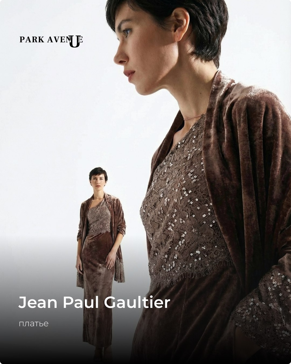 Мягкое мерцание ткани, сложные оттенки, вытянутые линии силуэта — всё это работает как продолжение вашей индивидуальности. Обыкновенно всё, кроме вас! ⏺️ Платье от Jean Paul Gaultier Бархатное платье от Jean Paul Gaultier поможет создать изысканный вечерний образ. Романтичный характер изделия поддерживают асимметричный лиф с гипюровой вставкой и широкий шарф, который можно накинуть на плечи. ⏺️ Платье от Nude Платье Nude - идеальный выбор для любительниц эффектных выходов. Изделие полностью покрыто мерцающими пайетками золотого цвета. Такая модель станет главным акцентом безупречного вечернего образа.